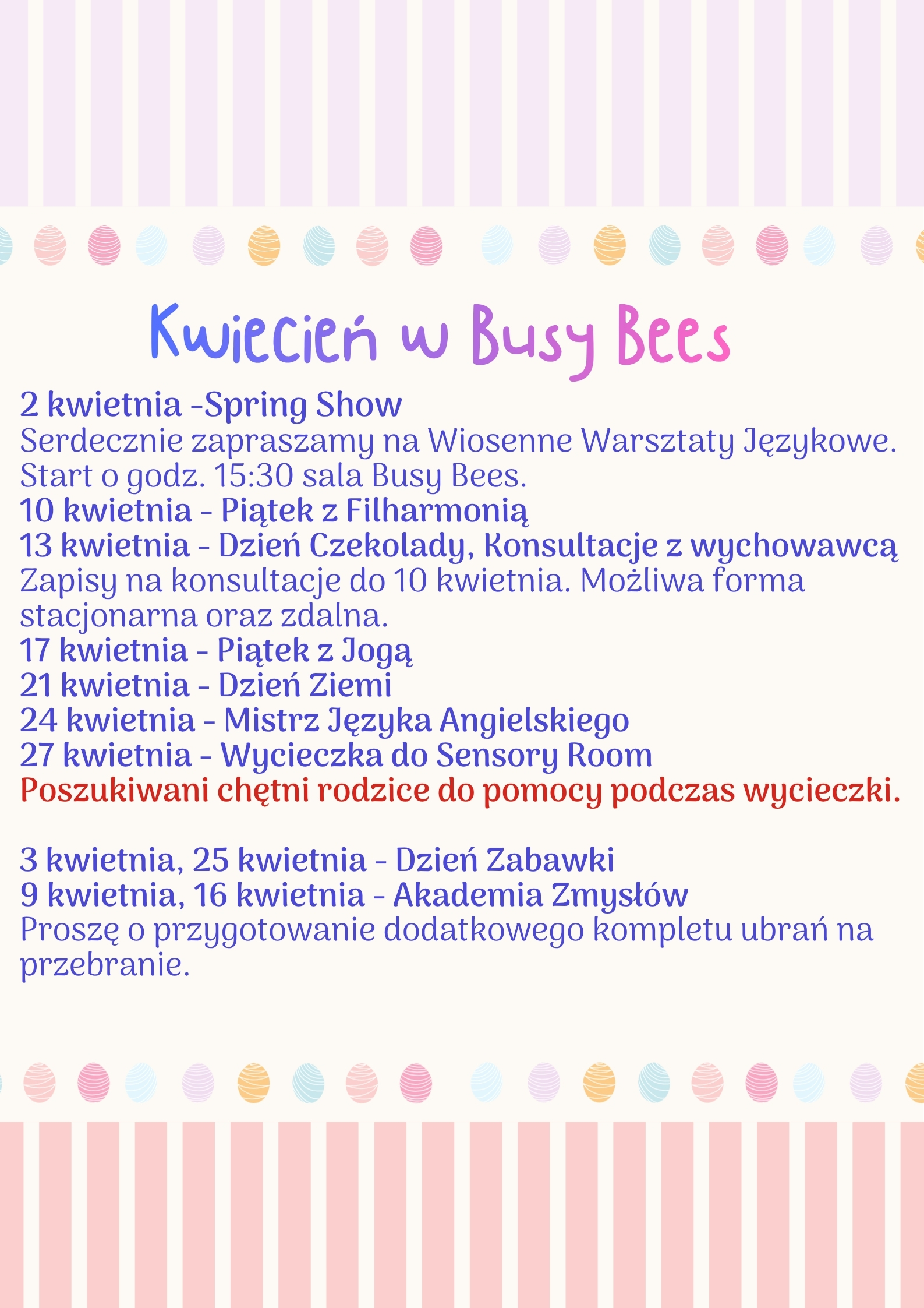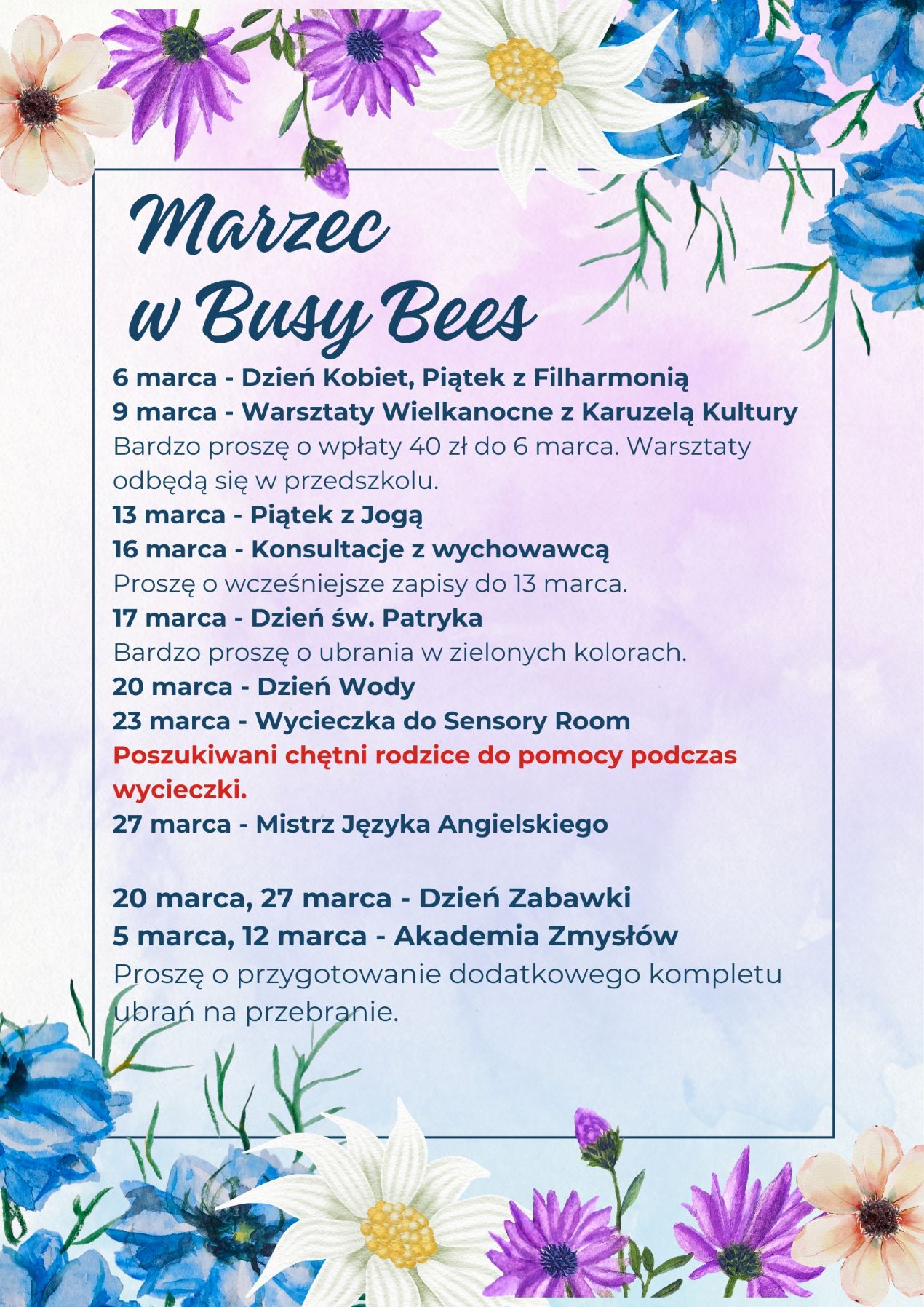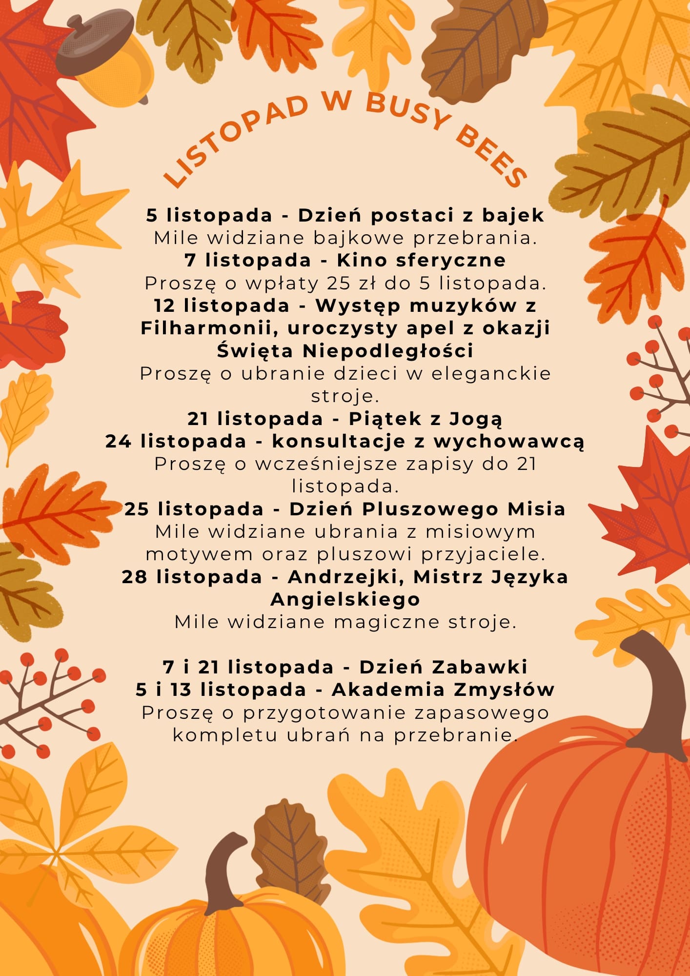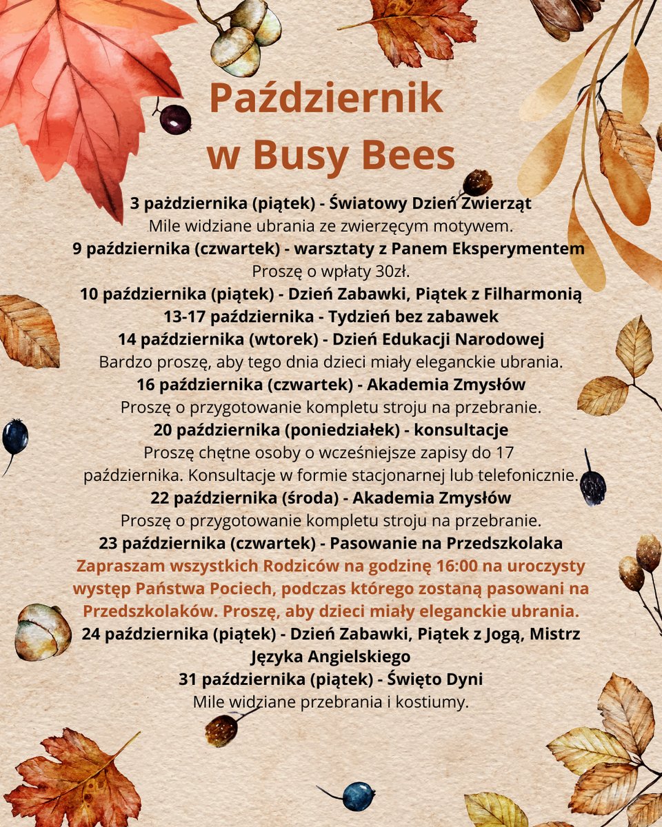 WYDARZENIA W BUSY BEES
